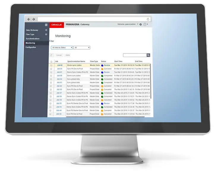 O Primavera Gateway ajuda organizações orientadas por projetos a controlar rigorosamente custos, cronogramas, materiais e recursos, fornecendo uma visão precisa e em tempo real do desempenho de todos os projetos, programas e portfólios de projetos ao longo do ciclo de vida do projeto. Ele fornece uma solução padrão de integração de dados que conecta aplicativos Oracle internamente e com outros aplicativos corporativos.
