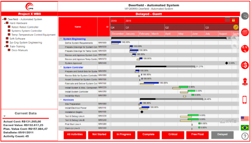 Navigate through the extracted projects and analyze the performance of each WBS to identify the source of potential deviations: